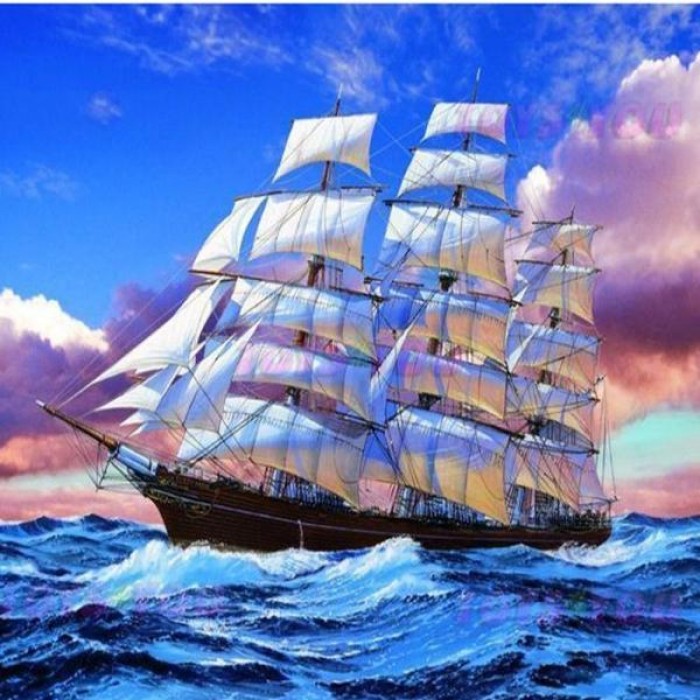 Blue sky with a breezy air makes white ragged sailing ship travel fast. Choose from several sizes: get more details with bigger sizes or choose a smaller size if you’re a beginner.