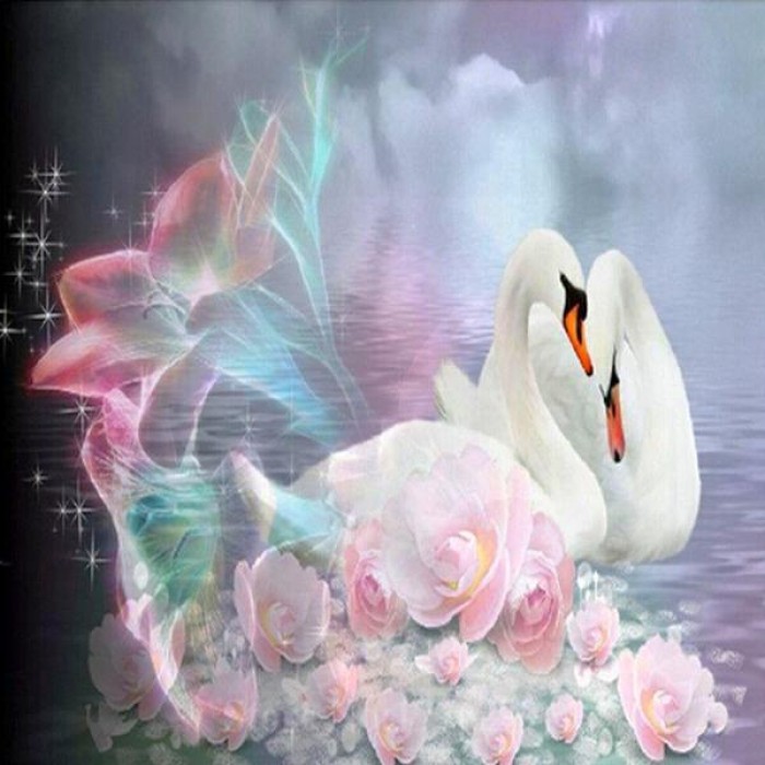 These two swans celebrate their romance with magical flowers. Choose from several sizes: get more details with bigger sizes or choose a smaller size if you’re a beginner.