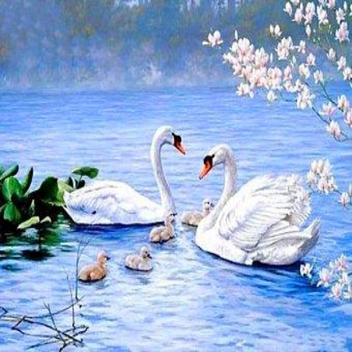 Swan couple has found a peaceful lake to raise their little ones. Choose from several sizes: get more details with bigger sizes or choose a smaller size if you’re a beginner.