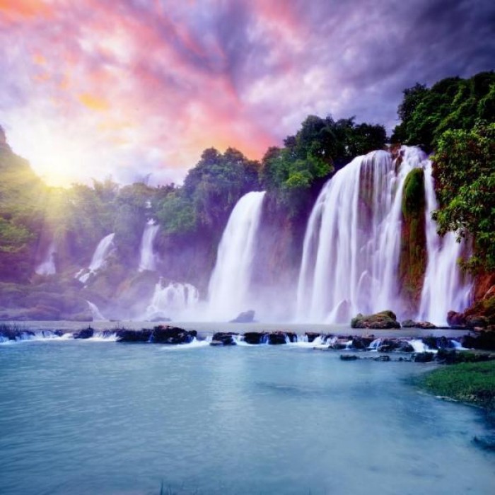 Beautiful waterfalls flow down from the flourishing forest. Choose from several sizes: get more details with bigger sizes or choose a smaller size if you’re a beginner.