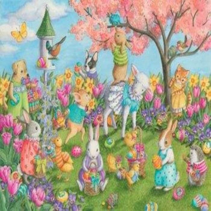Cheerful animals are having fun in their Easter party. Choose from several sizes: get more details with bigger sizes or choose a smaller size if you’re a beginner.