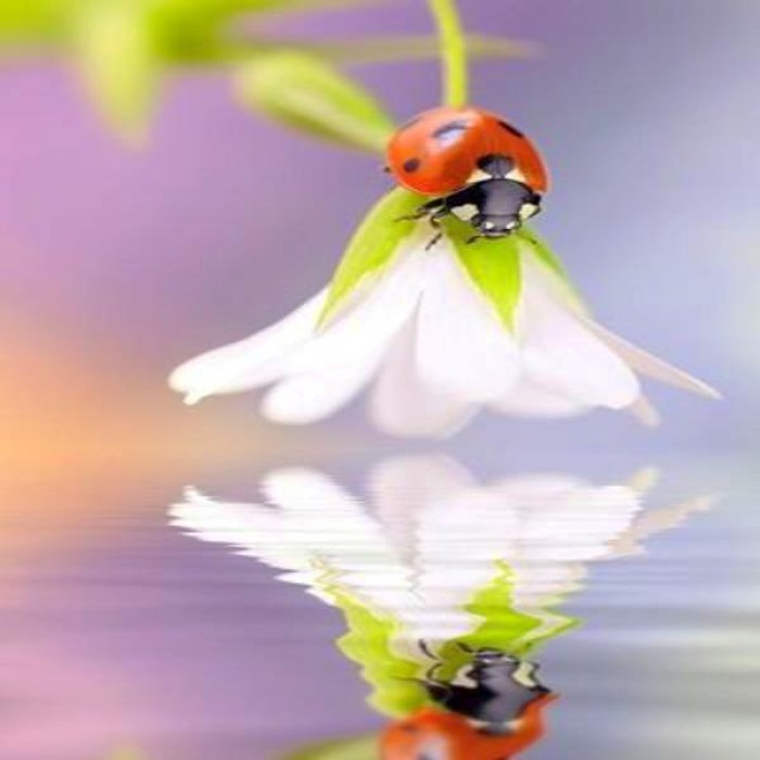Little ladybug seems to be in a bit of trouble hanging on the flower above the water. Choose from several sizes: get more details with bigger sizes or choose a smaller size if you’re a beginner.
