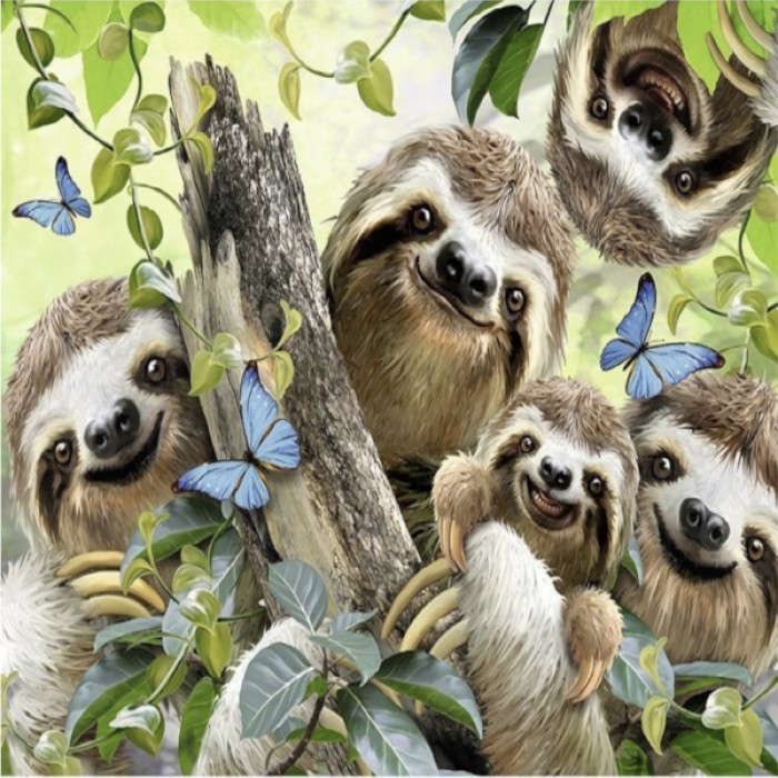 Big family of sloths looks so happy living in a jungle. Choose from several sizes: get more details with bigger sizes or choose a smaller size if you’re a beginner.