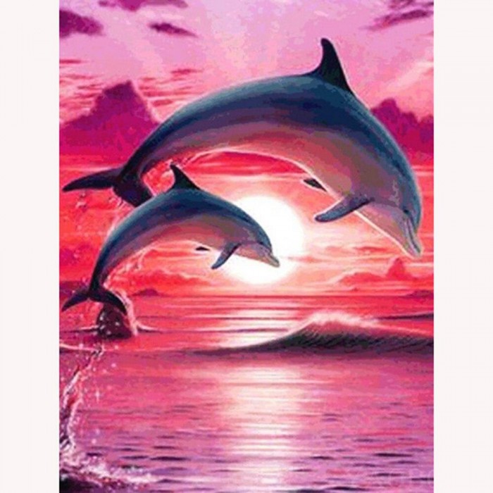 How gorgeous colors the sunset makes on ocean and inspires two dolphins to jump happily all over! Choose from several sizes: get more details with bigger sizes or choose a smaller size if you’re a beginner.