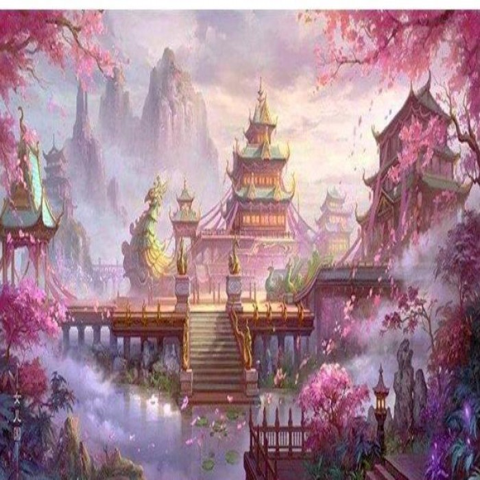 Misty mountains somewhere far away surround a temple of an ancient town. This magnificent picture looks like it's straight from a storybook. Choose from several sizes: get more details with bigger sizes or choose a smaller size if you’re a beginner.