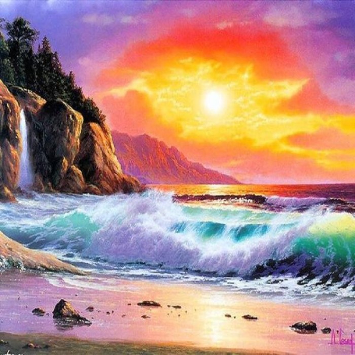 Stunning view of the silent beach with a magnificent sunset. Choose from several sizes: get more details with bigger sizes or choose a smaller size if you’re a beginner.