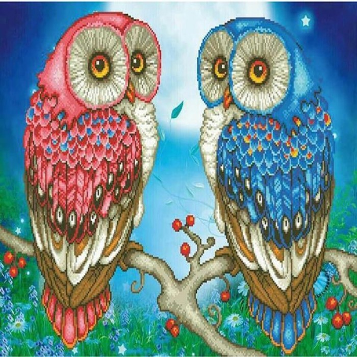 Cute owls look like a mirror image of each other except this mirror seems to change colors. Choose from several sizes: get more details with bigger sizes or choose a smaller size if you’re a beginner.