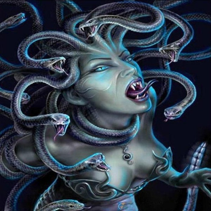 Furious snake headed woman - Medusa - can turn men into a rock with her gaze. Choose from several sizes: get more details with bigger sizes or choose a smaller size if you’re a beginner.