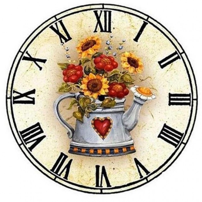 Fancy watering can could also be a lovely flower pot and it looks great in this clock face too. Choose from several sizes: get more details with bigger sizes or choose a smaller size if you’re a beginner.