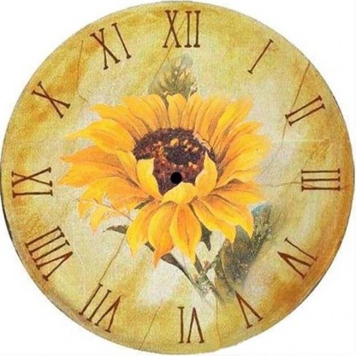 Bright yellow sunflower is the beautiful centre of this lovely clock face. Choose from several sizes: get more details with bigger sizes or choose a smaller size if you’re a beginner.