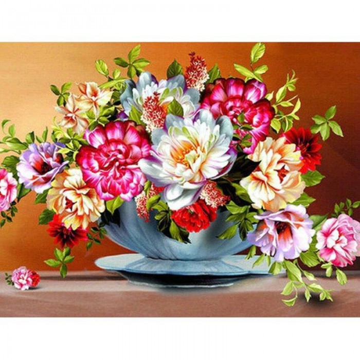 This dashing bowl full of flowers catches the eye with its bright colors. Choose from several sizes: get more details with bigger sizes or choose a smaller size if you’re a beginner.