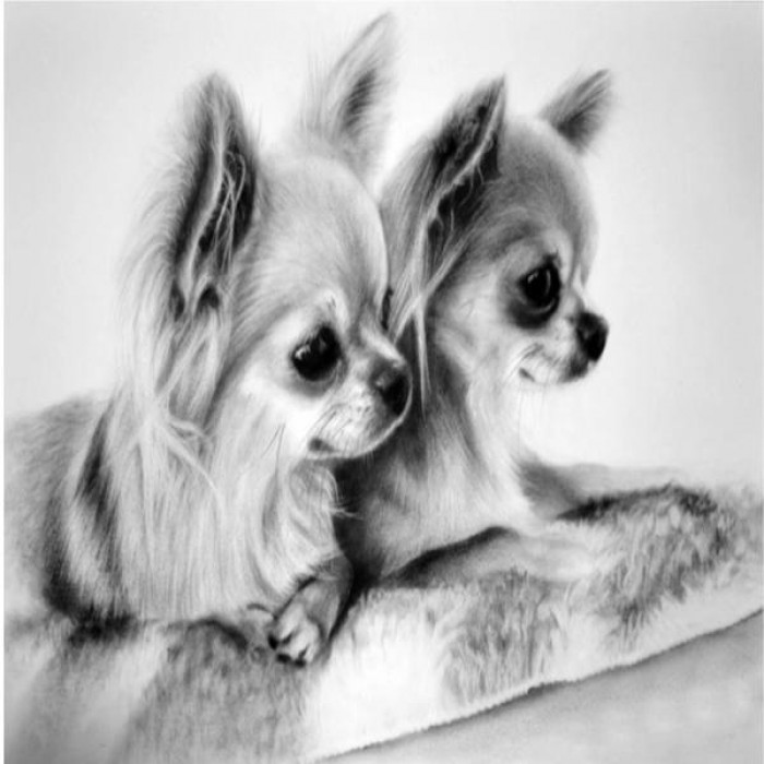 Two tiny Chihuahuas noticed something interesting beside them and now they look at it incessantly. Is it a new toy or maybe a treat? Choose from several sizes: get more details with bigger sizes or choose a smaller size if you’re a beginner.
