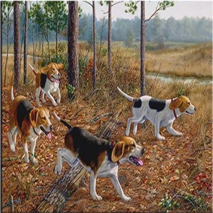 Group of energetic Beagles are ready for chasing rabbits in the Autumn forest. Choose from several sizes: get more details with bigger sizes or choose a smaller size if you’re a beginner.