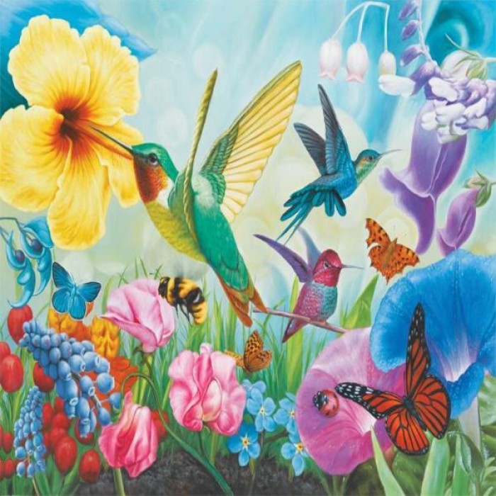 This brightly colored flower meadow looks like a paradise for hummingbirds. Choose from several sizes: get more details with bigger sizes or choose a smaller size if you’re a beginner.